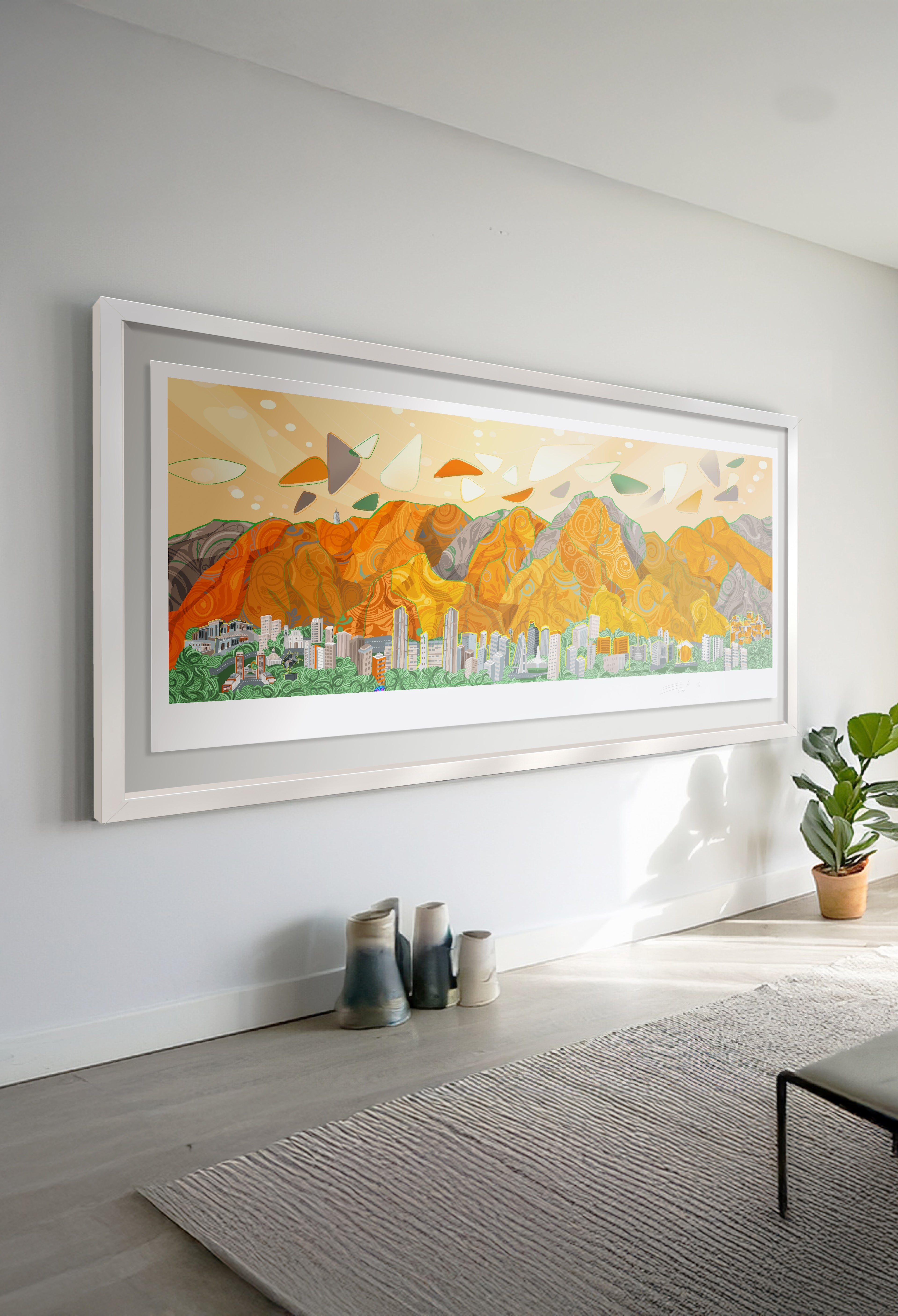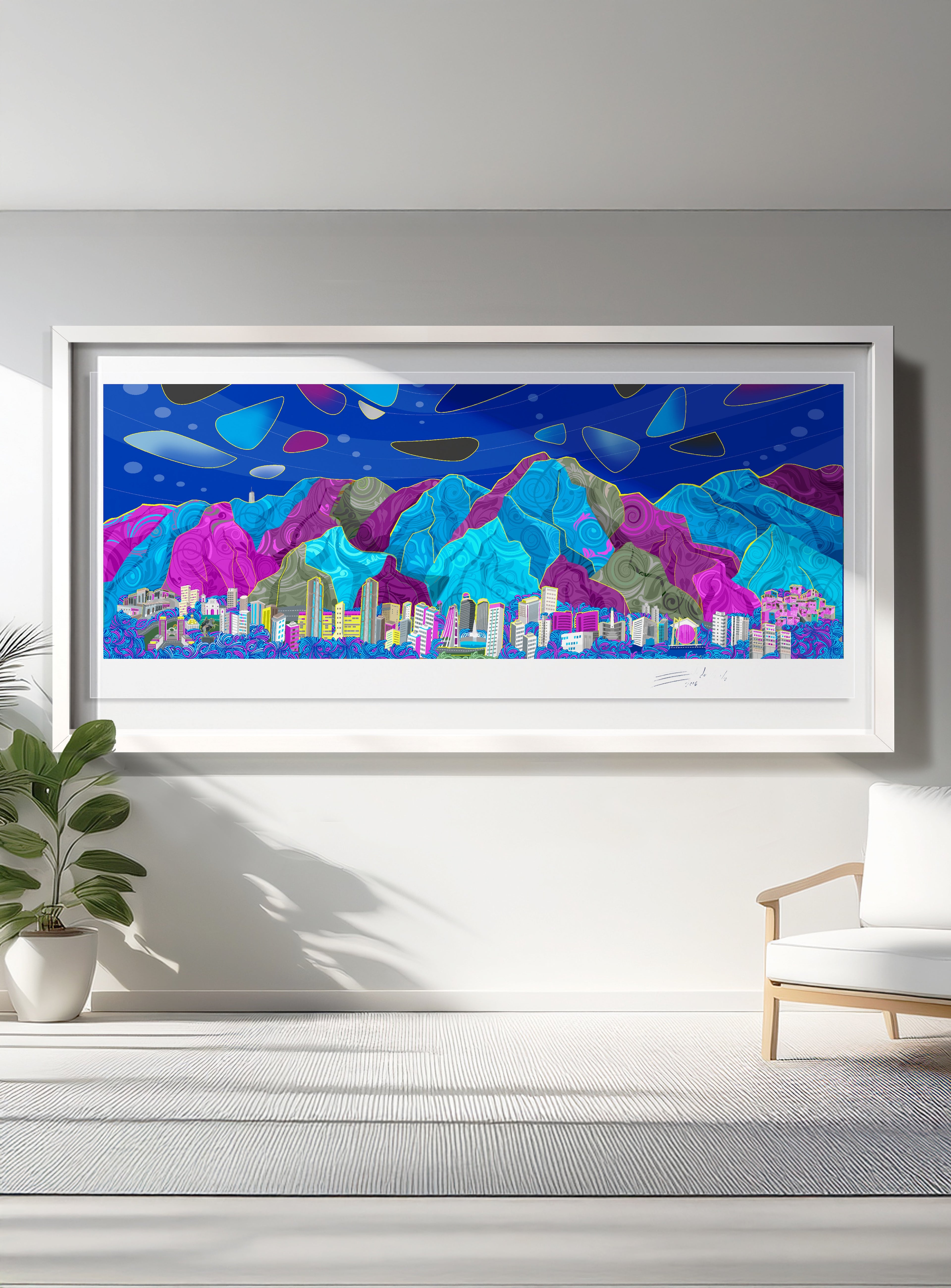 Todos tenemos una geografía muy personal. Para EDO lo es su Caracas natal. Y esa bella ciudad tiene una inmensa e imponente guardiana que la orienta, resguarda y eleva: Las montañas de El Ávila. Edo le rinde tributo en esta serie que recoge su silueta omnipresente y la reinterpreta con espíritu pop. Inspirado en la visión de Monet sobre la luz, Ávila Arte Pop evoca la montaña a través de distintas horas del día, conectando arte, memoria urbana y afecto por una ciudad que fue vanguardia y es paisaje.