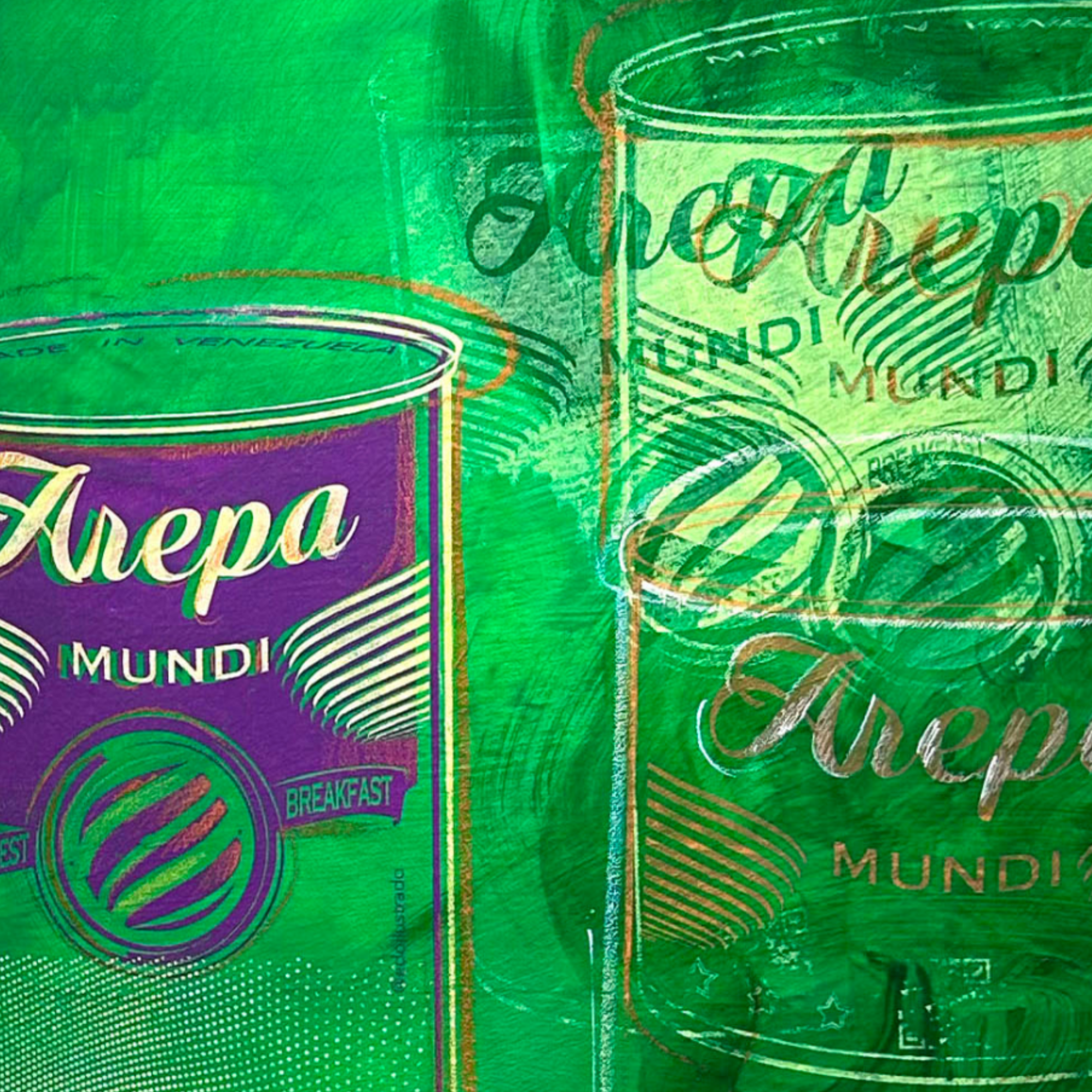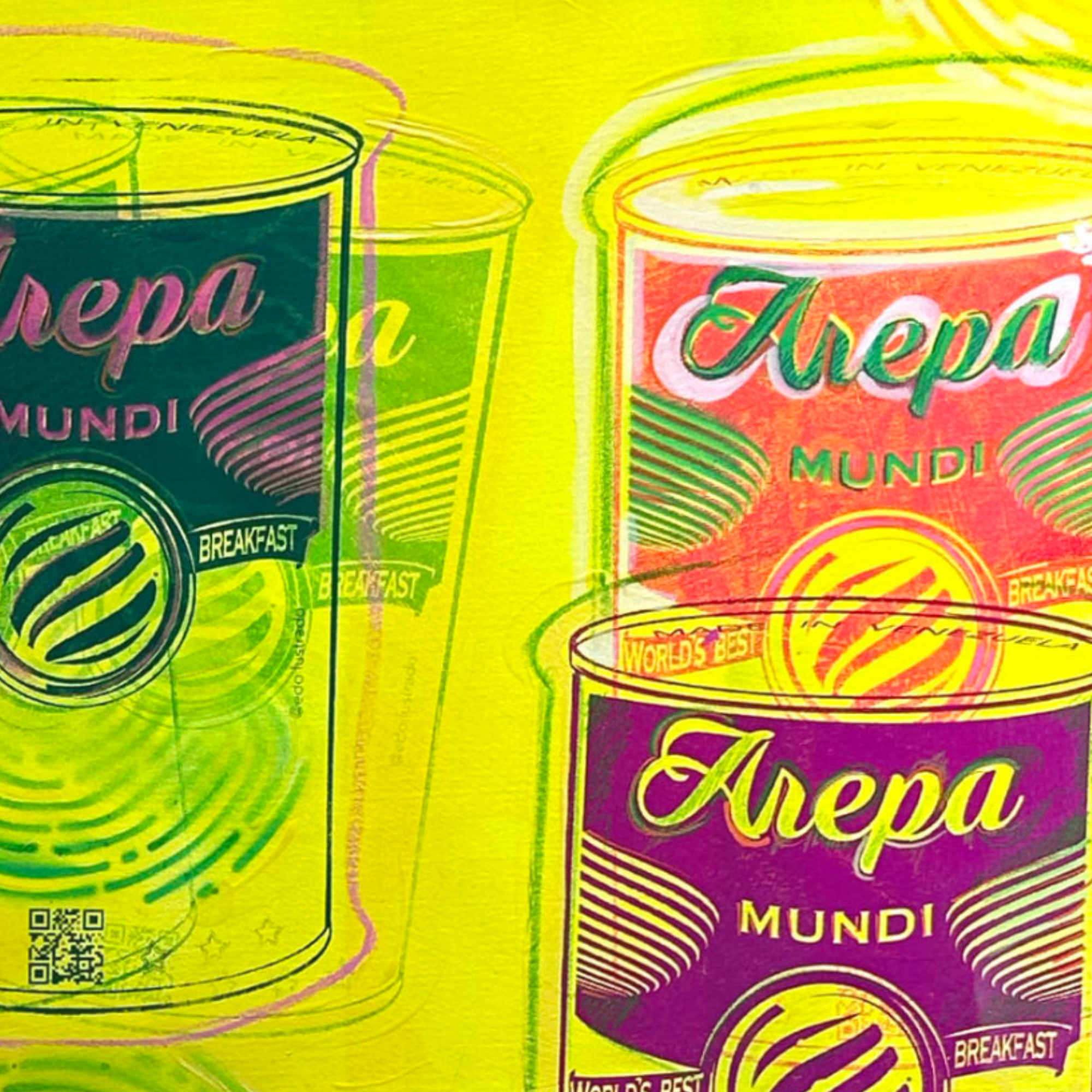 Lo Pop de la arepa en gran formato. EDO comienza a experimentar con la técnica de la serigrafía, utilizada también por uno de sus referentes; Andy Warhol.