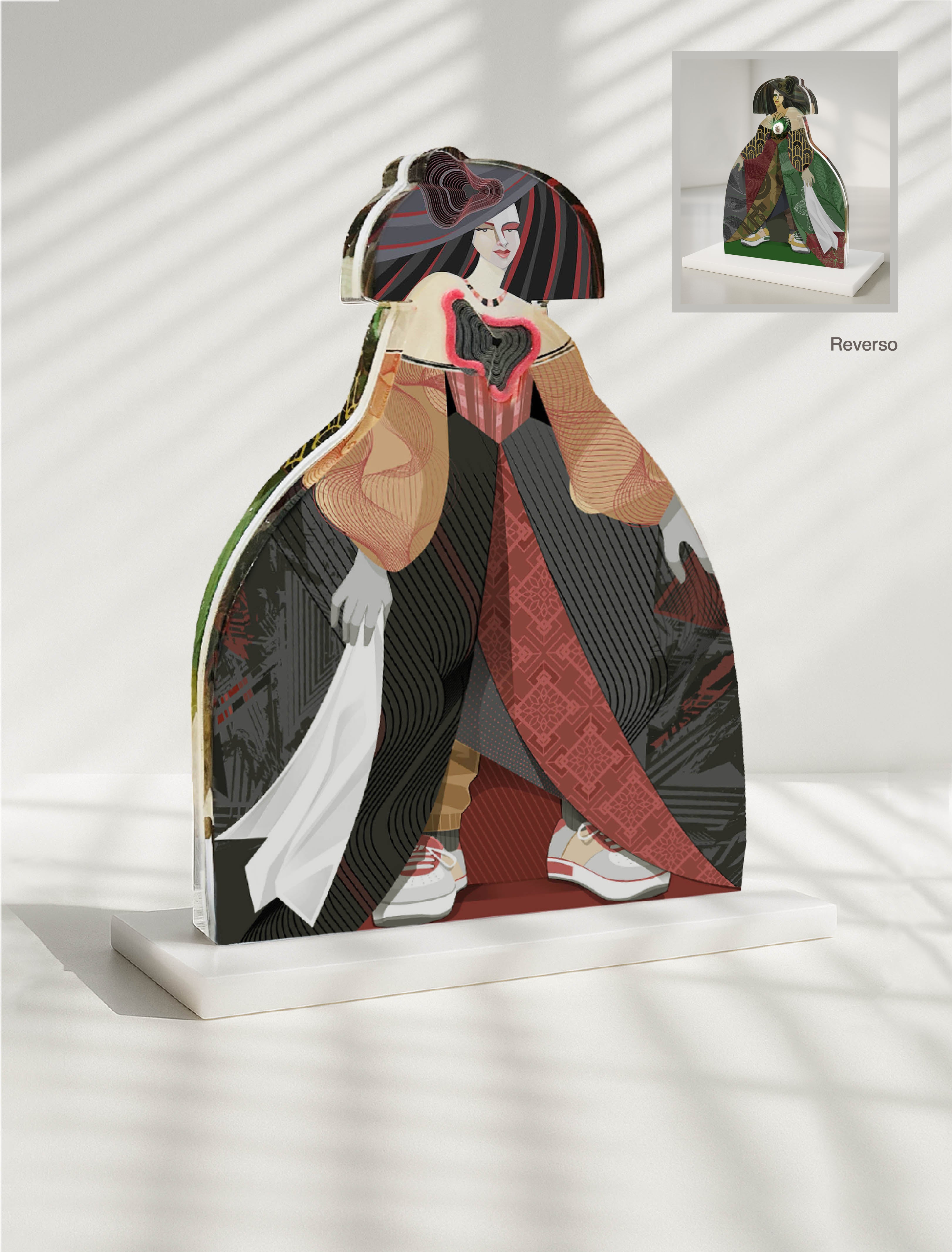 EDO sigue desafiando convenciones a través de un lenguaje innovador que combina la escultura con el acrílico como medio envolvente. Las piezas exploran el juego de la doble vista, generando una experiencia visual que invita a descubrir nuevas capas de sentido desde cada ángulo.