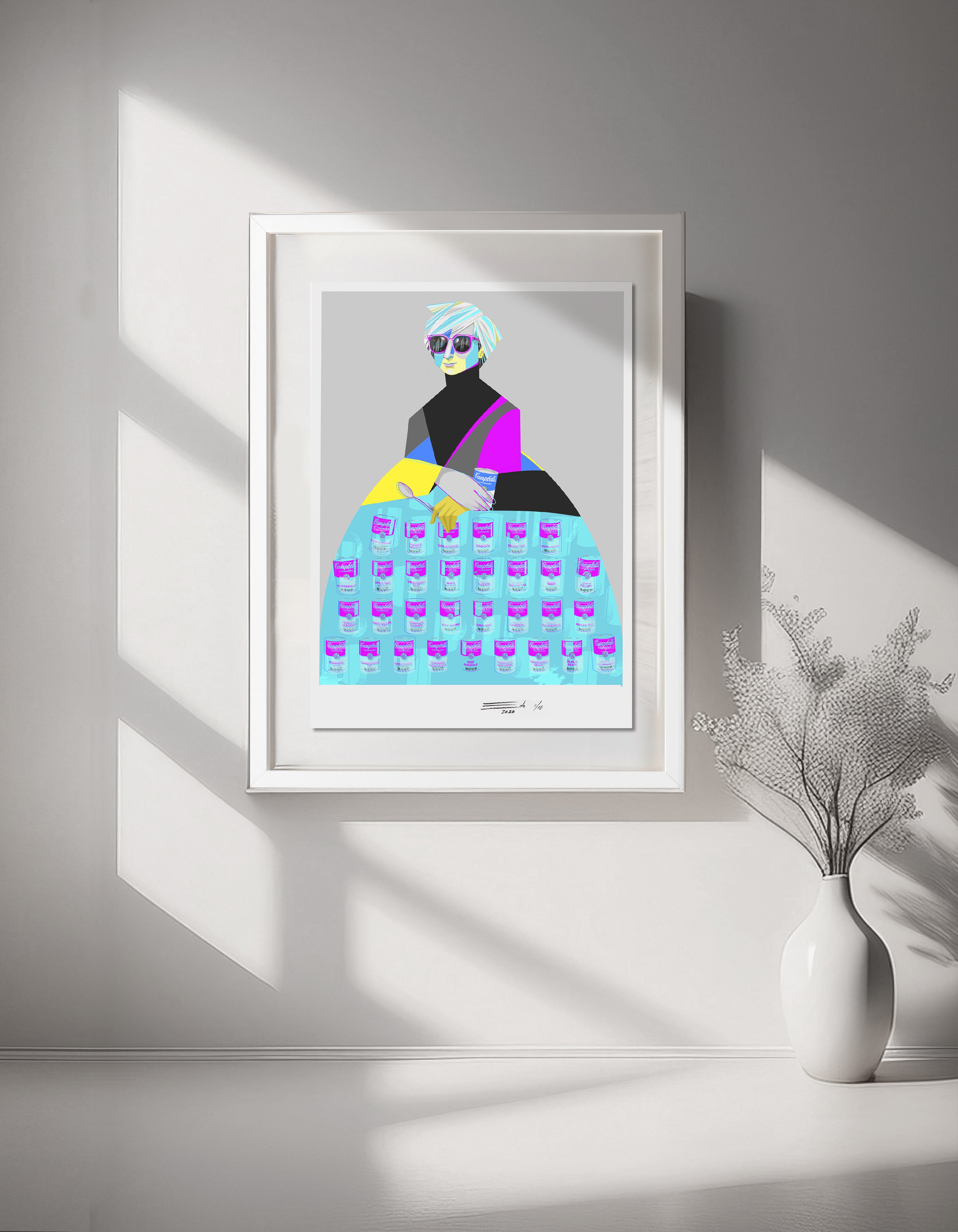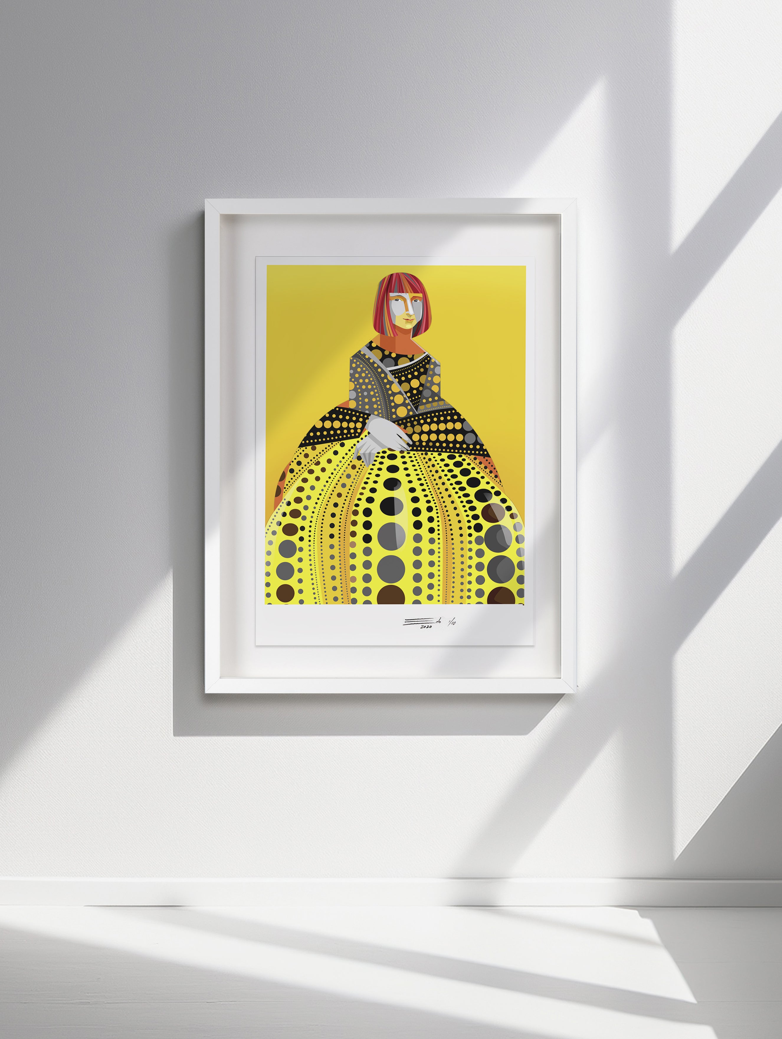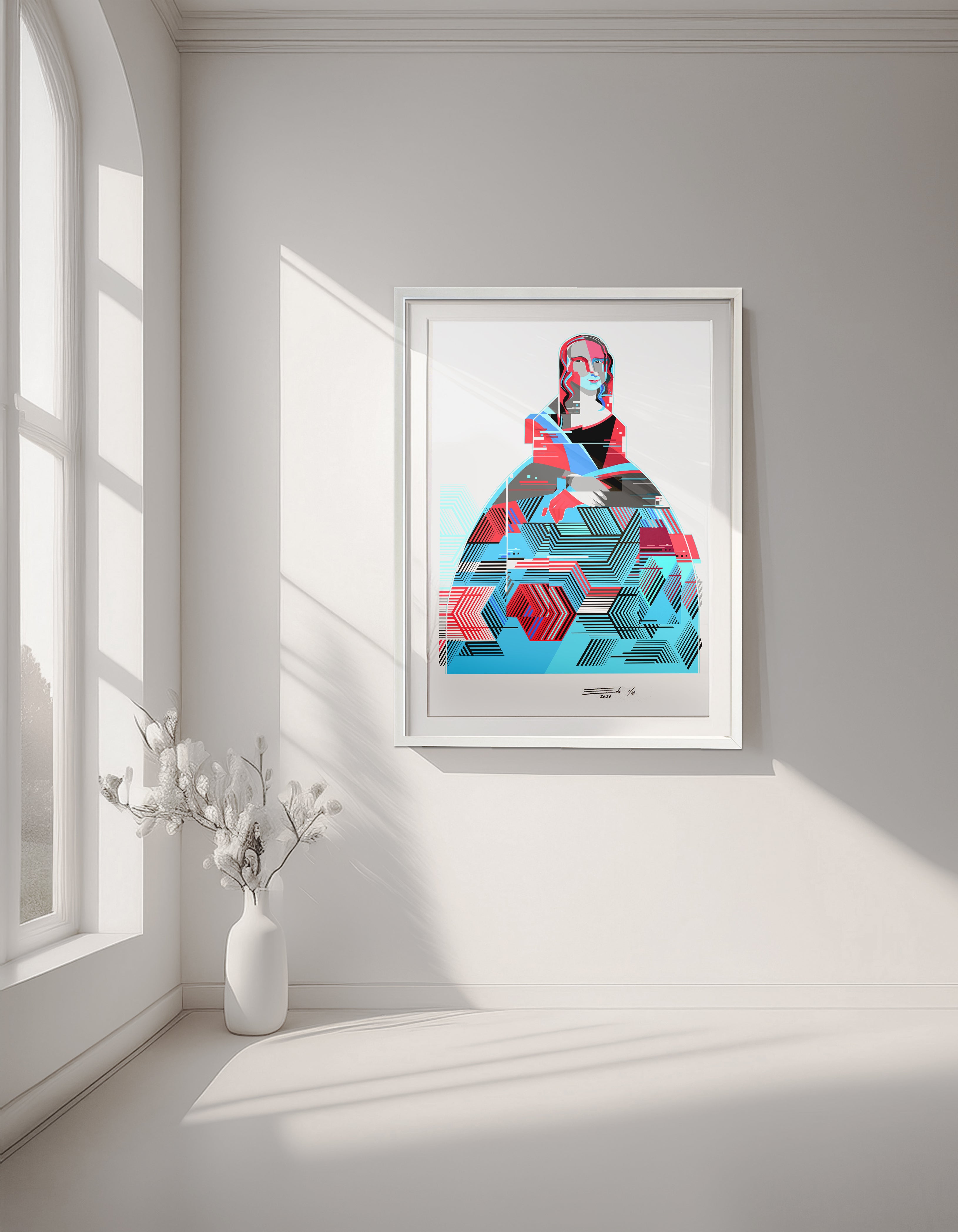 Presentada en montaje flotante y enmarcada con madera laqueada blanca. Incluye certificado de autenticidad.