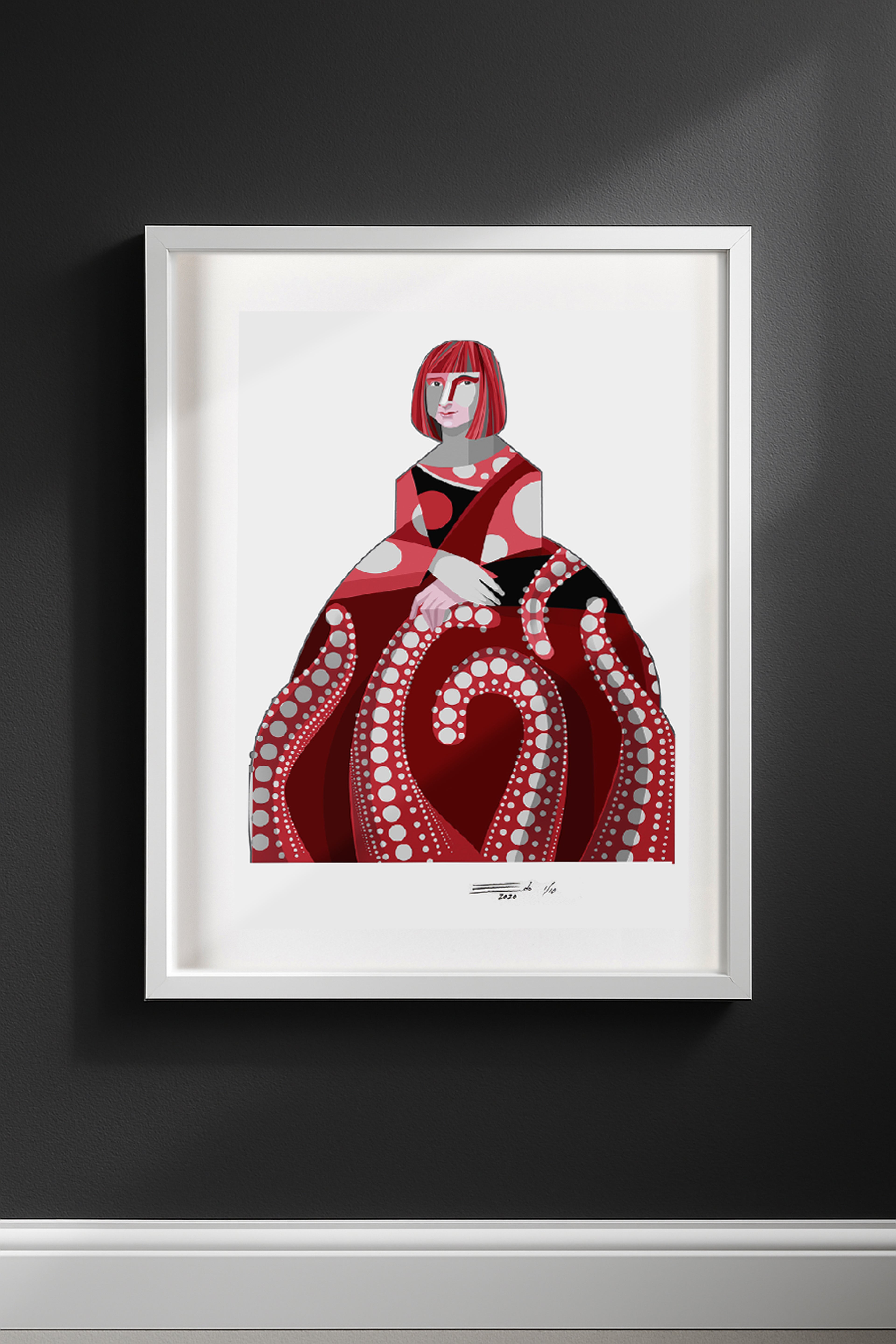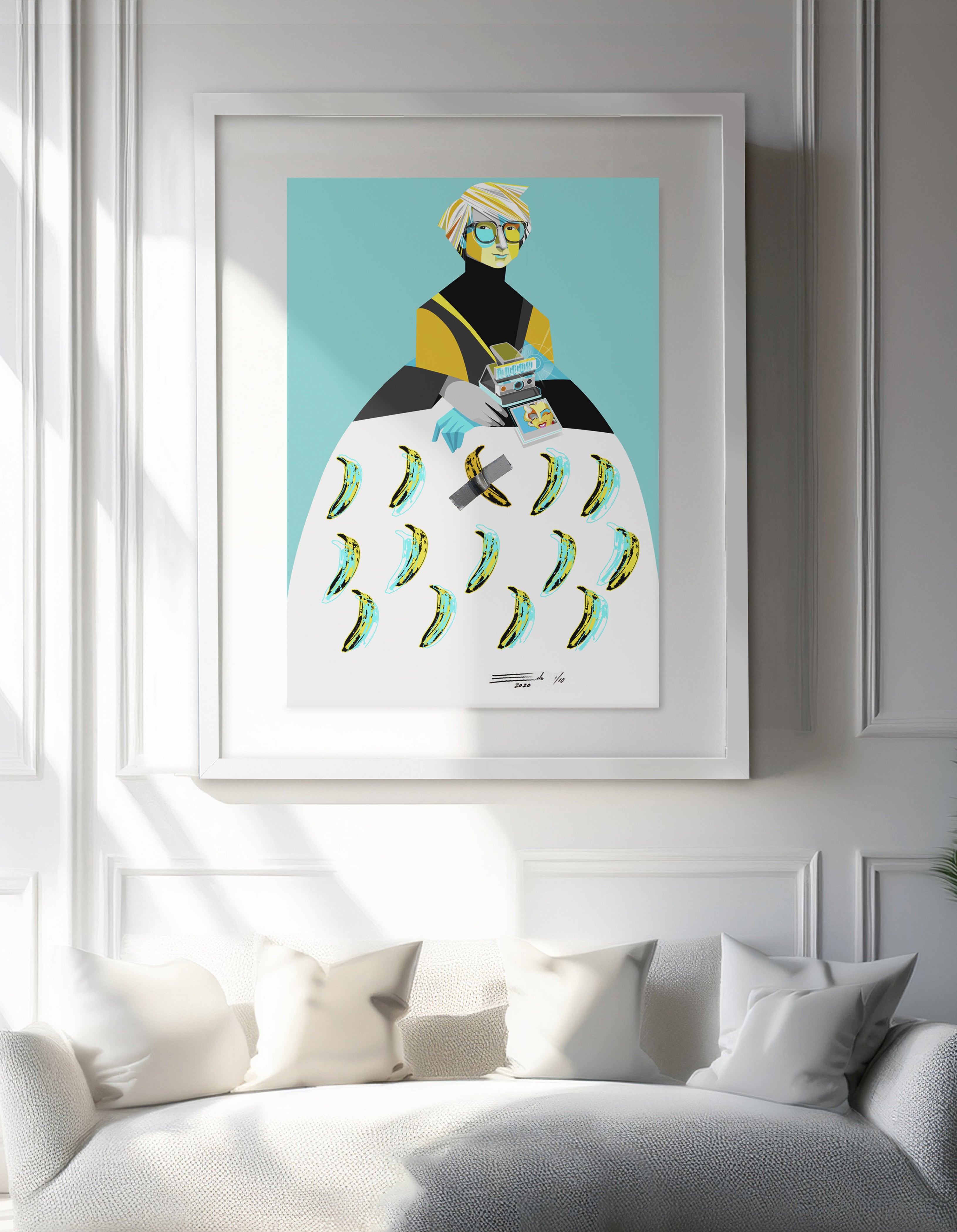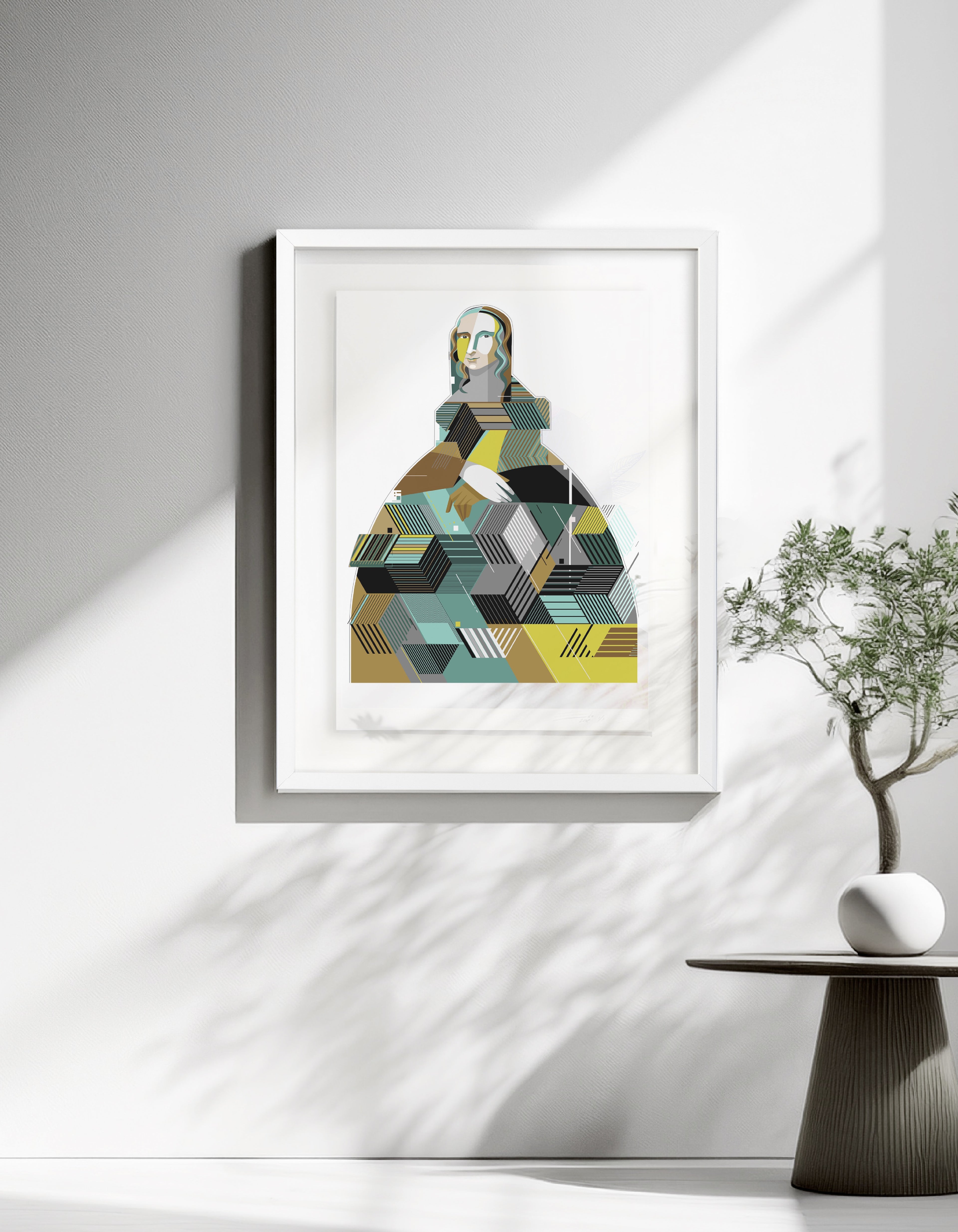 Presentada en montaje flotante y enmarcada con madera laqueada blanca. Incluye certificado de autenticidad.