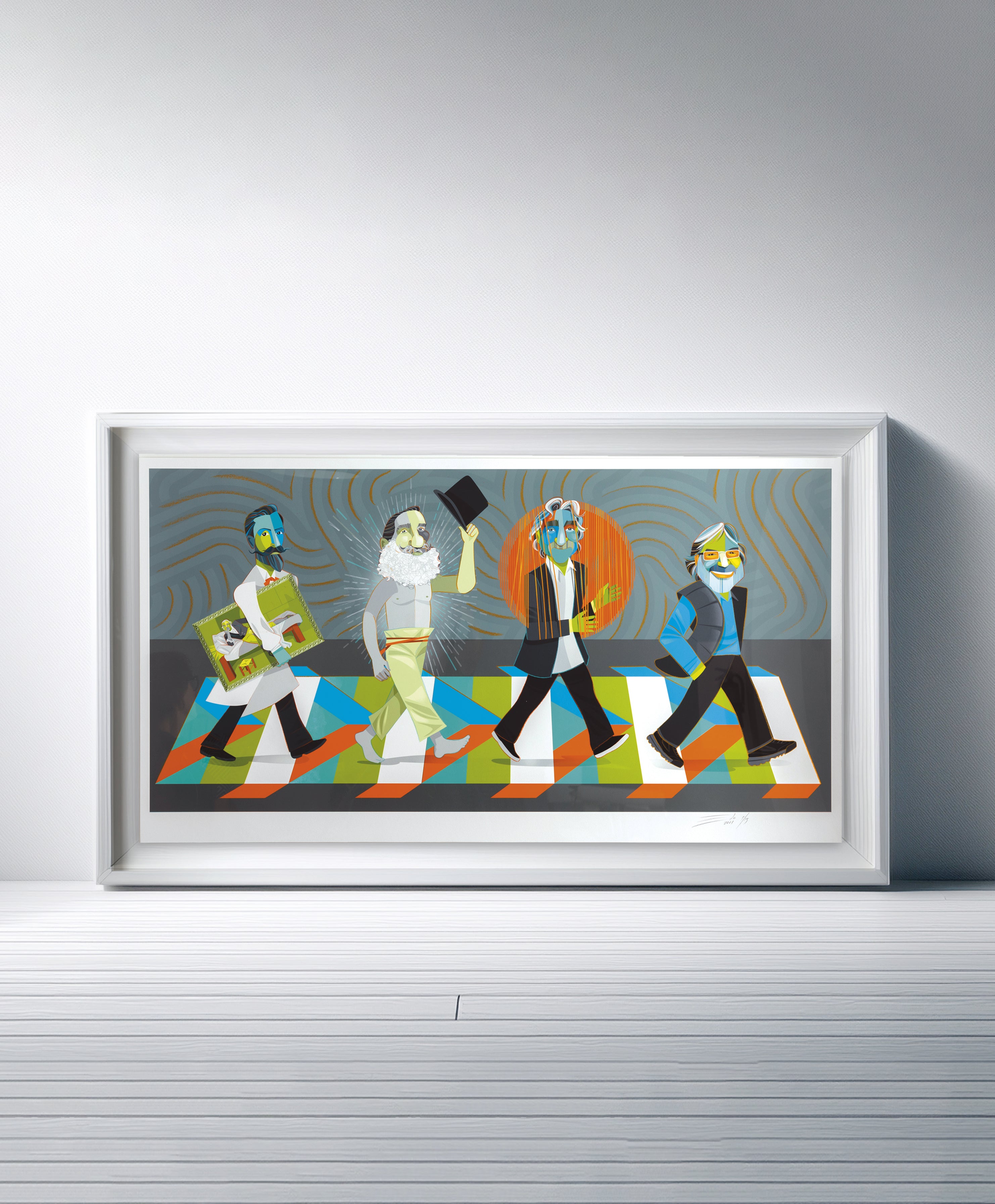 Técnica Mixta: Dibujada a mano y coloreada digitalmente. Impresa con técnica Gicleé sobre papel algodón alemán Hahnemühle e intervenida con crayones de óleo y acrílico.