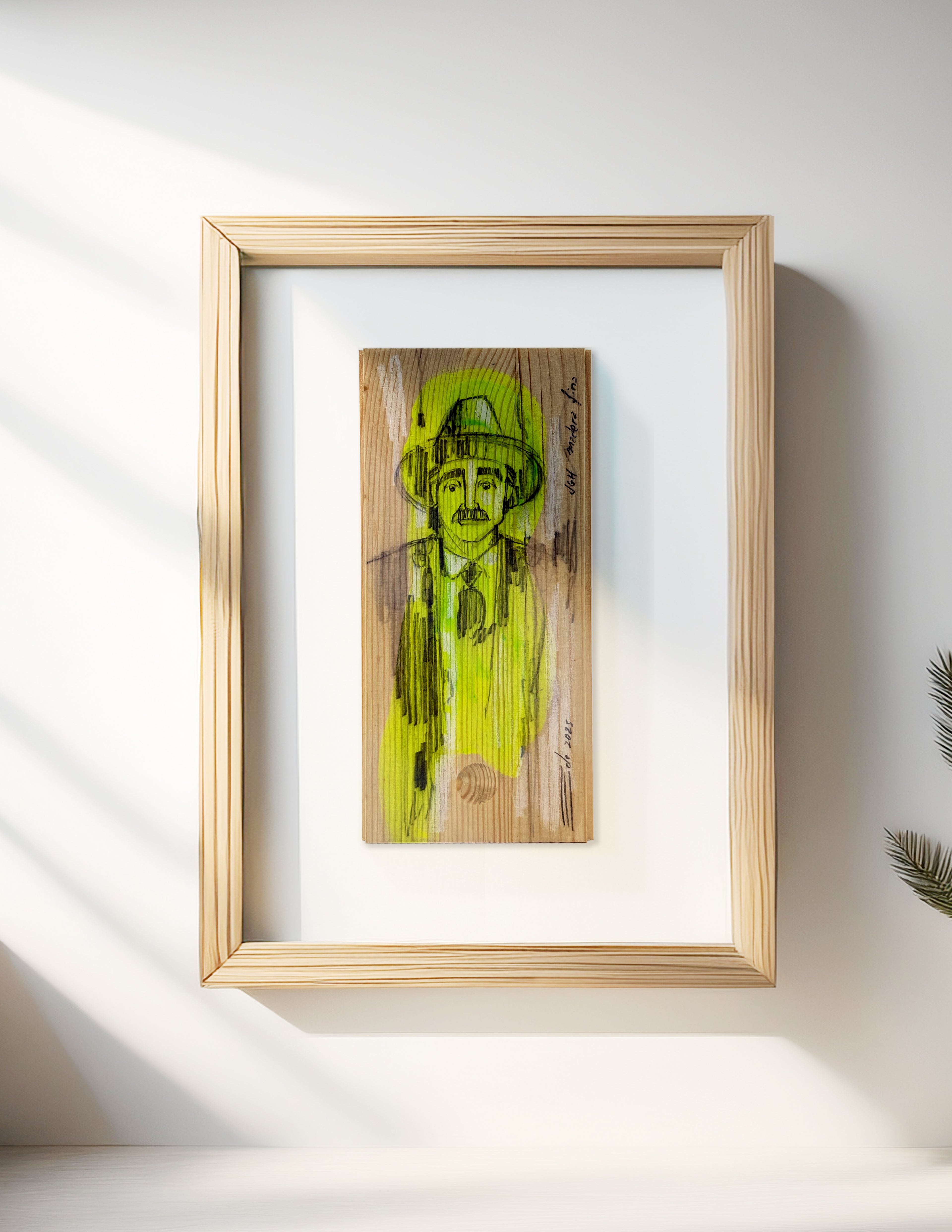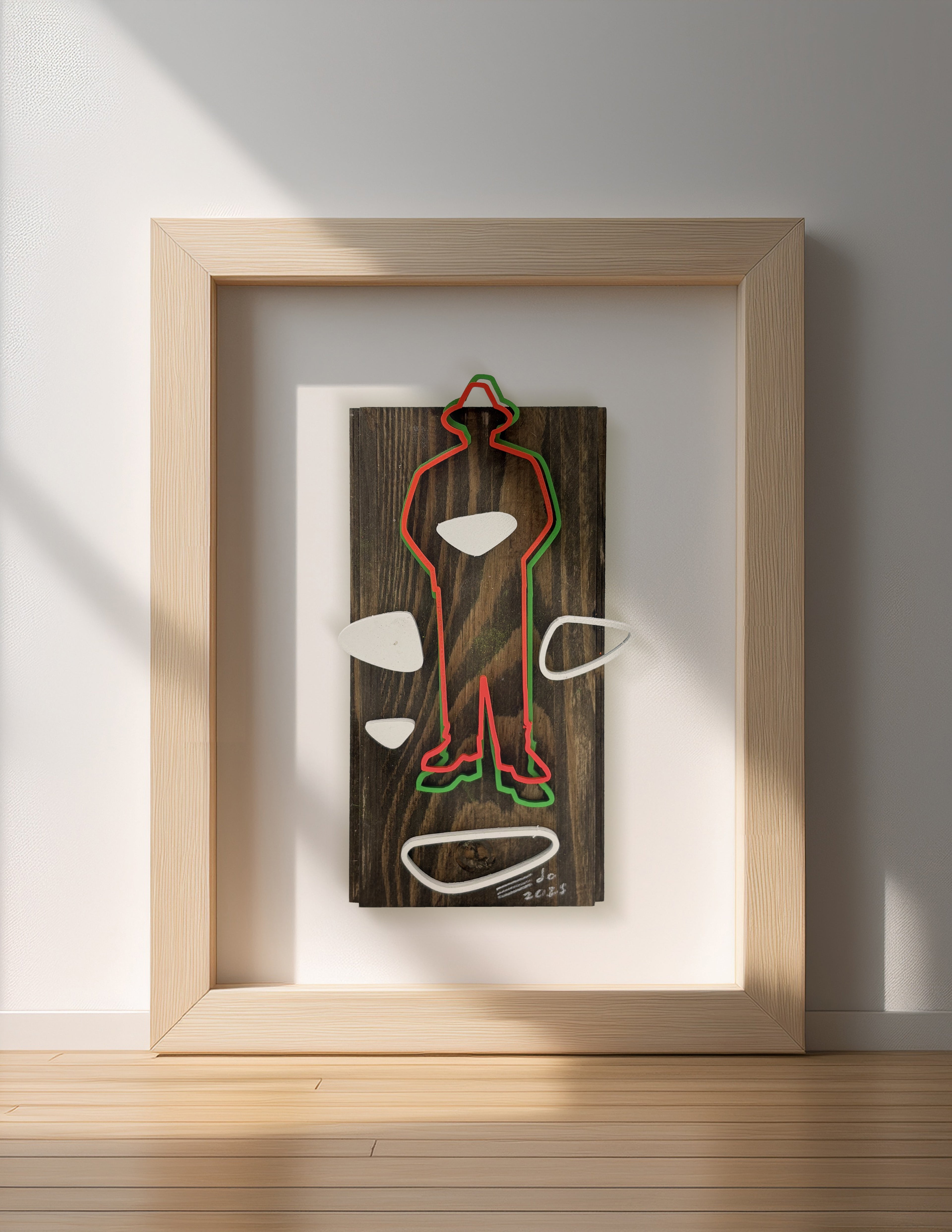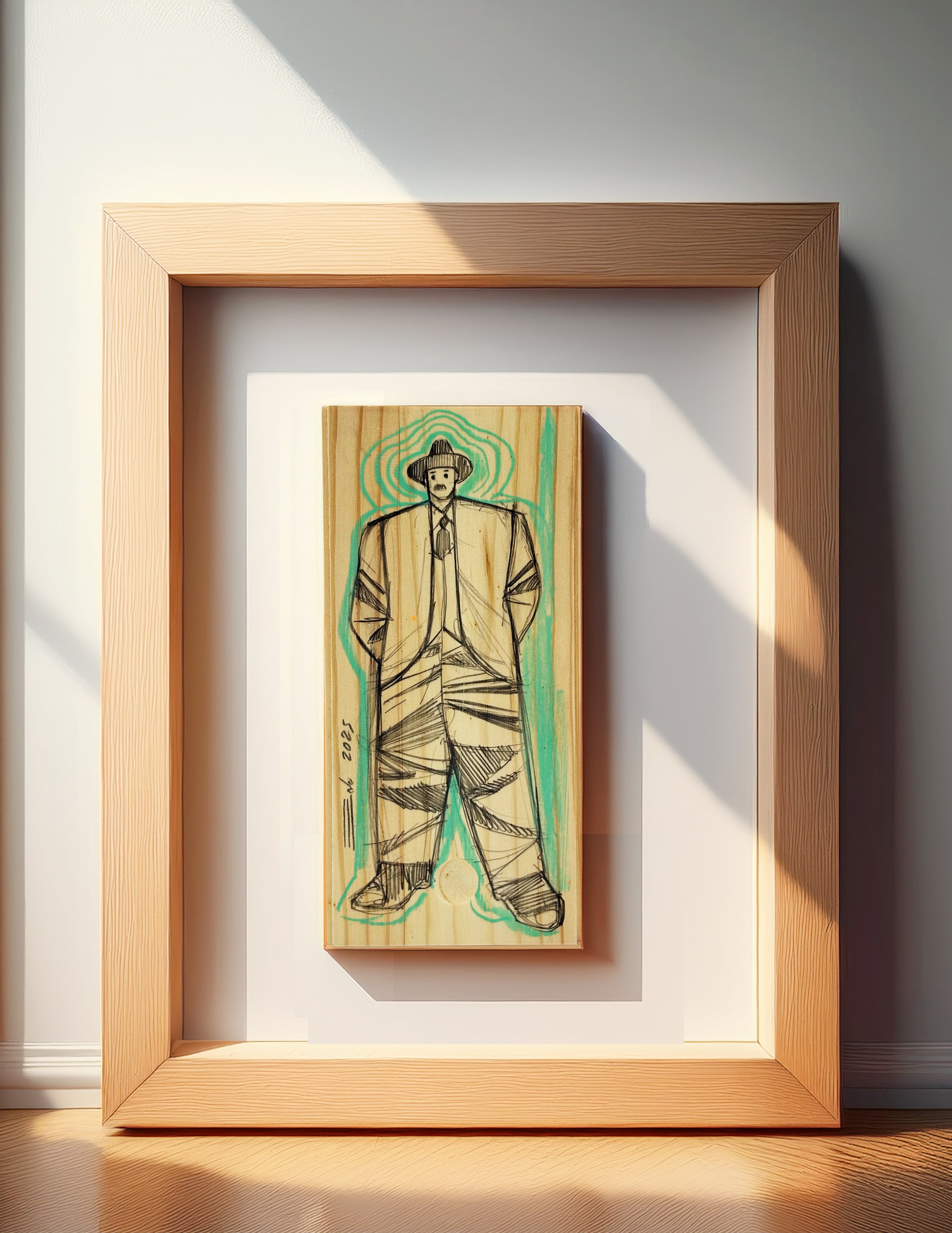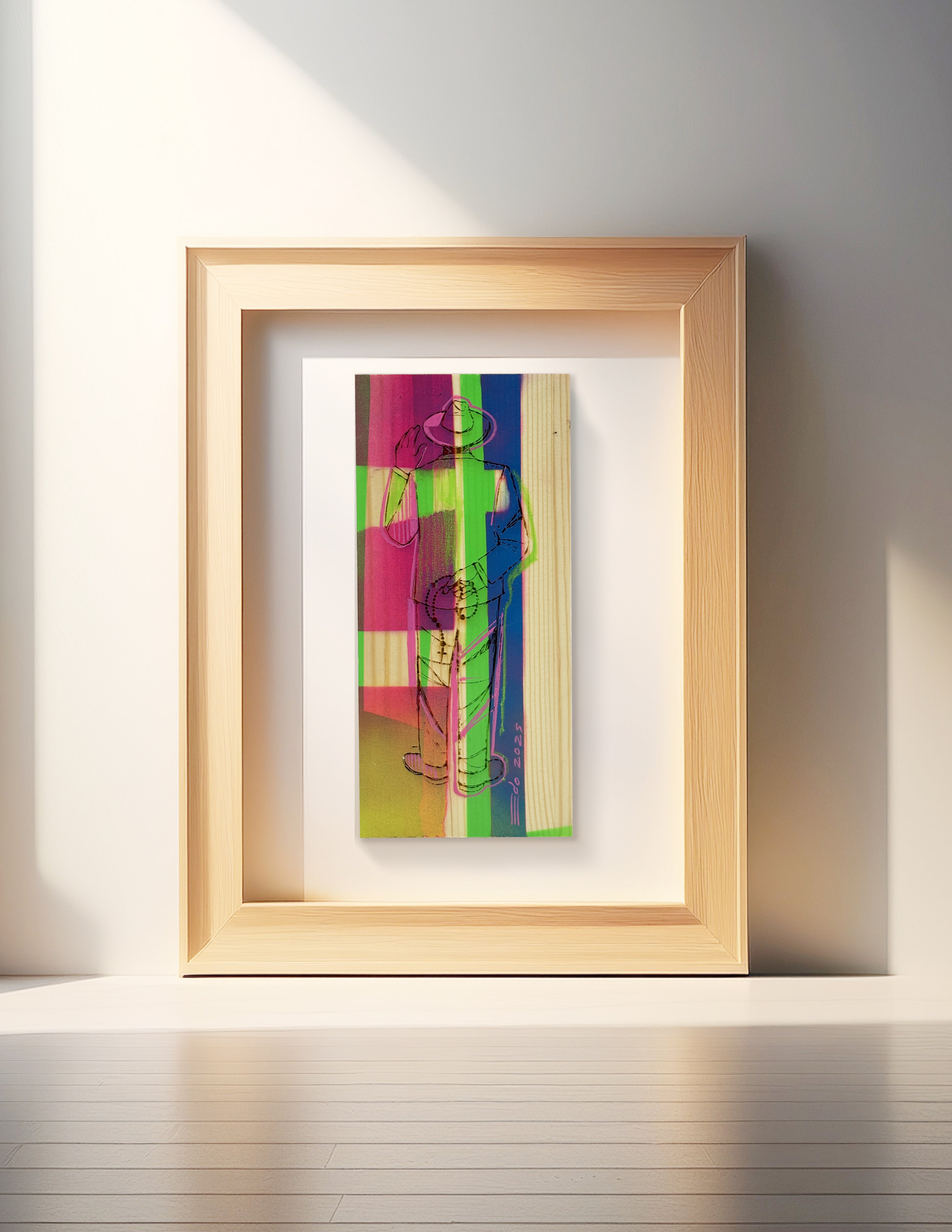 Madera Viva: Rinde homenaje a la esencia del soporte. Las vetas se integran a la pintura, las líneas se adaptan al pulso natural del material, y la figura humana o simbólica surge como una extensión del tronco y su memoria.