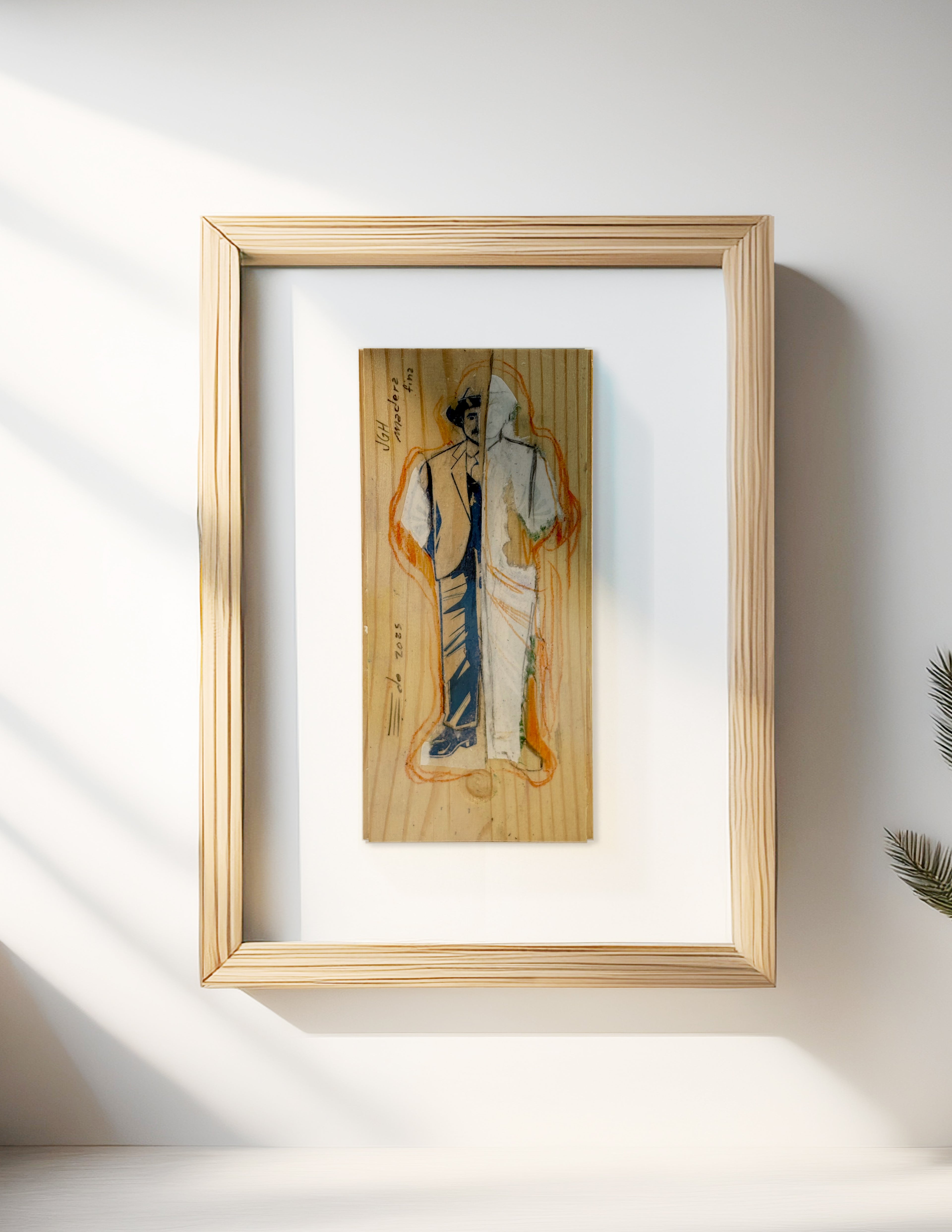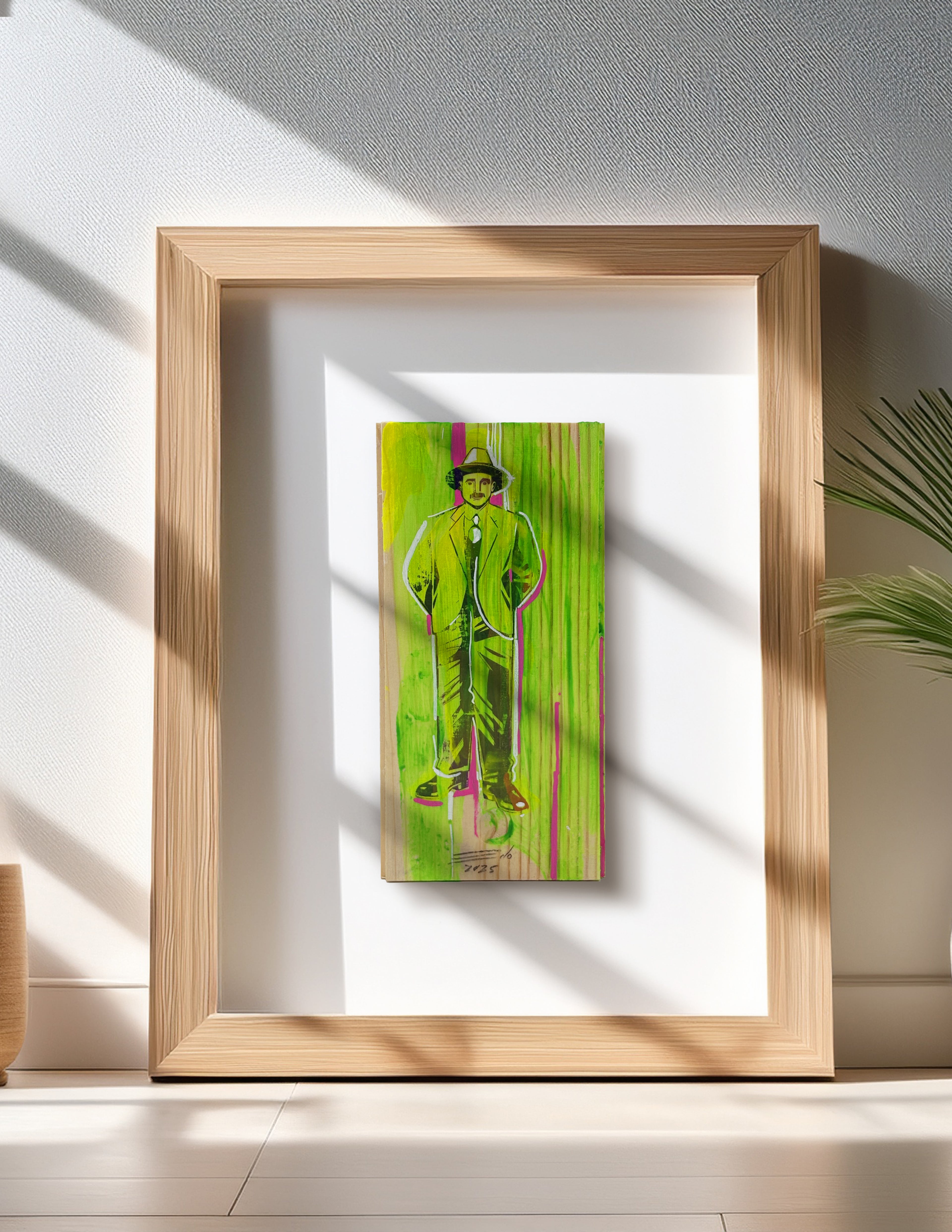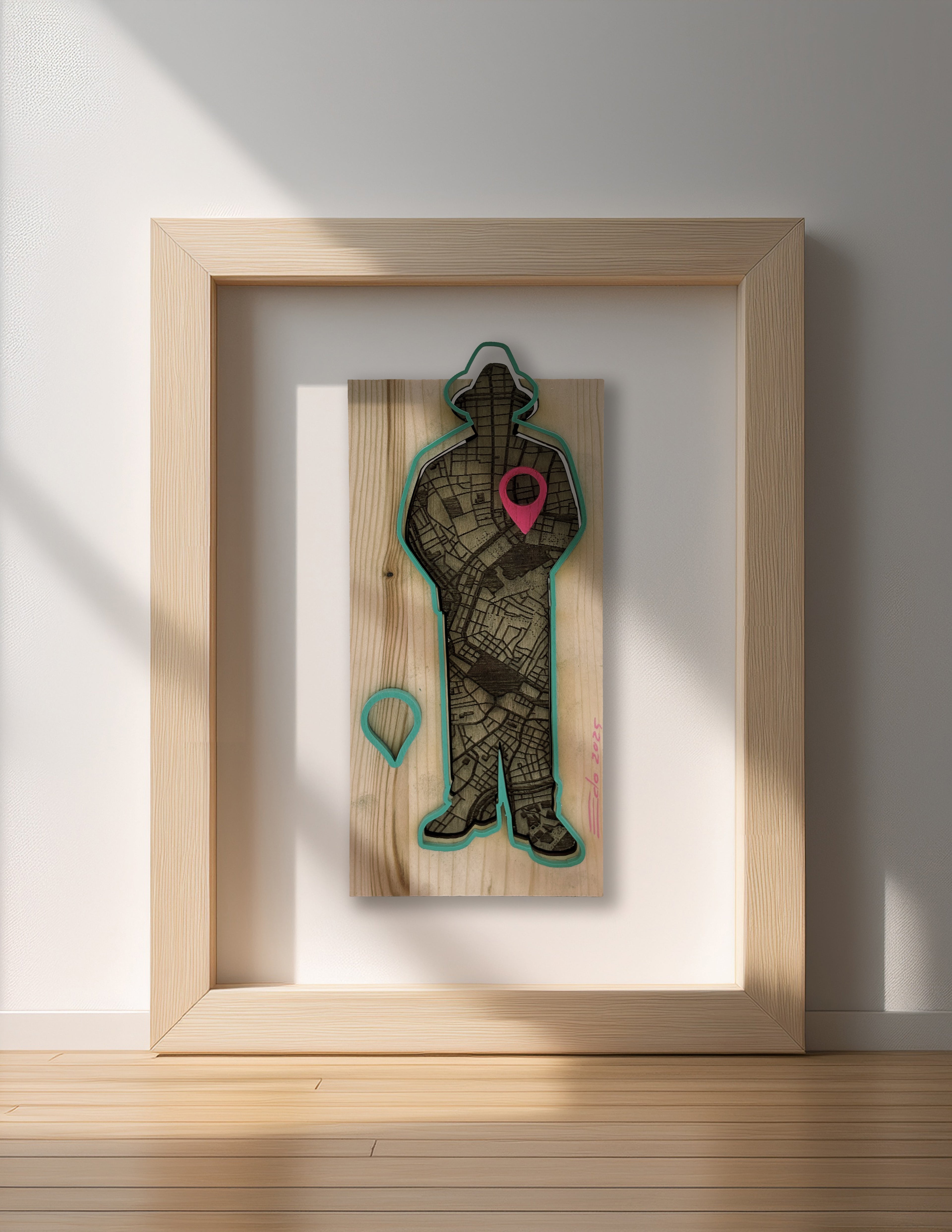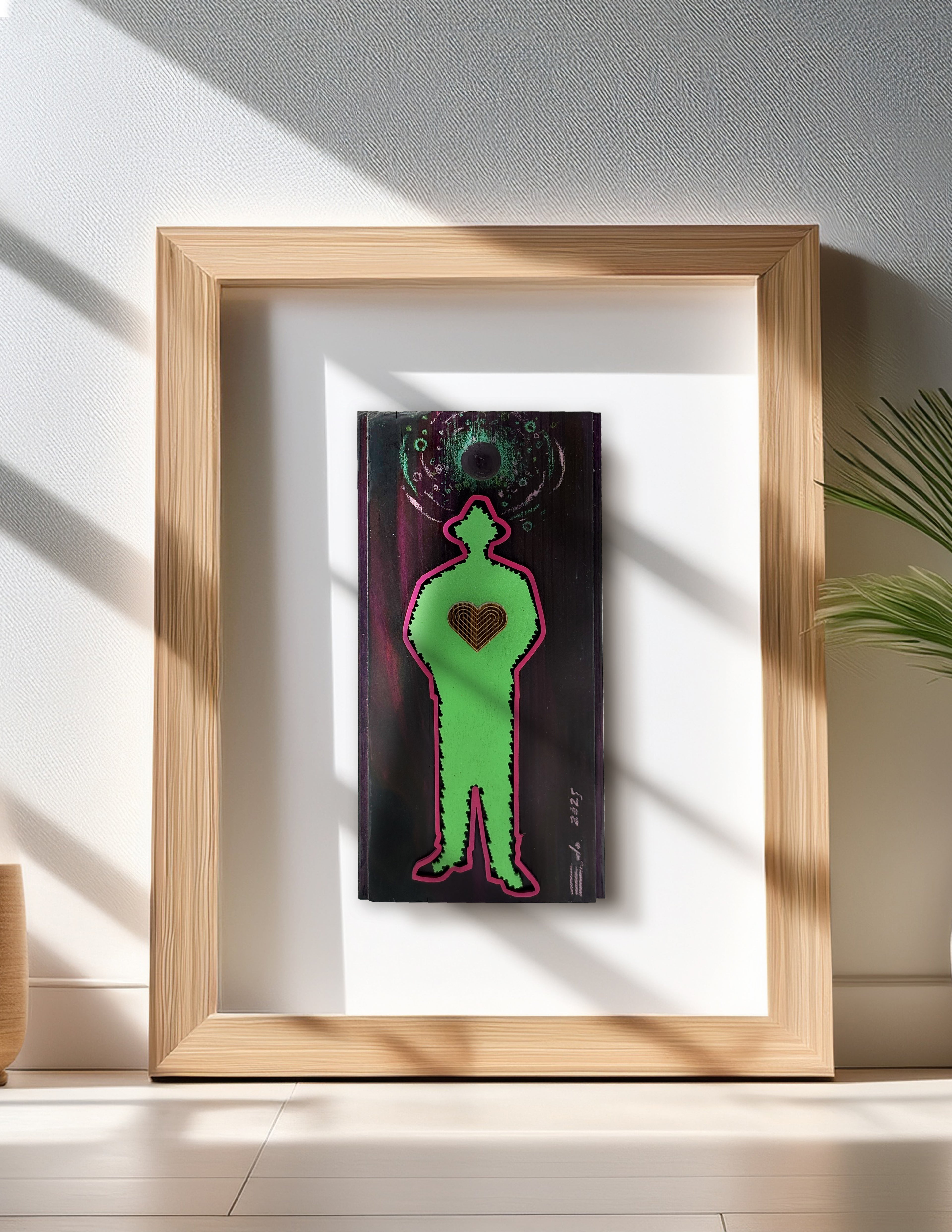 Madera Viva: Rinde homenaje a la esencia del soporte. Las vetas se integran a la pintura, las líneas se adaptan al pulso natural del material, y la figura humana o simbólica surge como una extensión del tronco y su memoria.