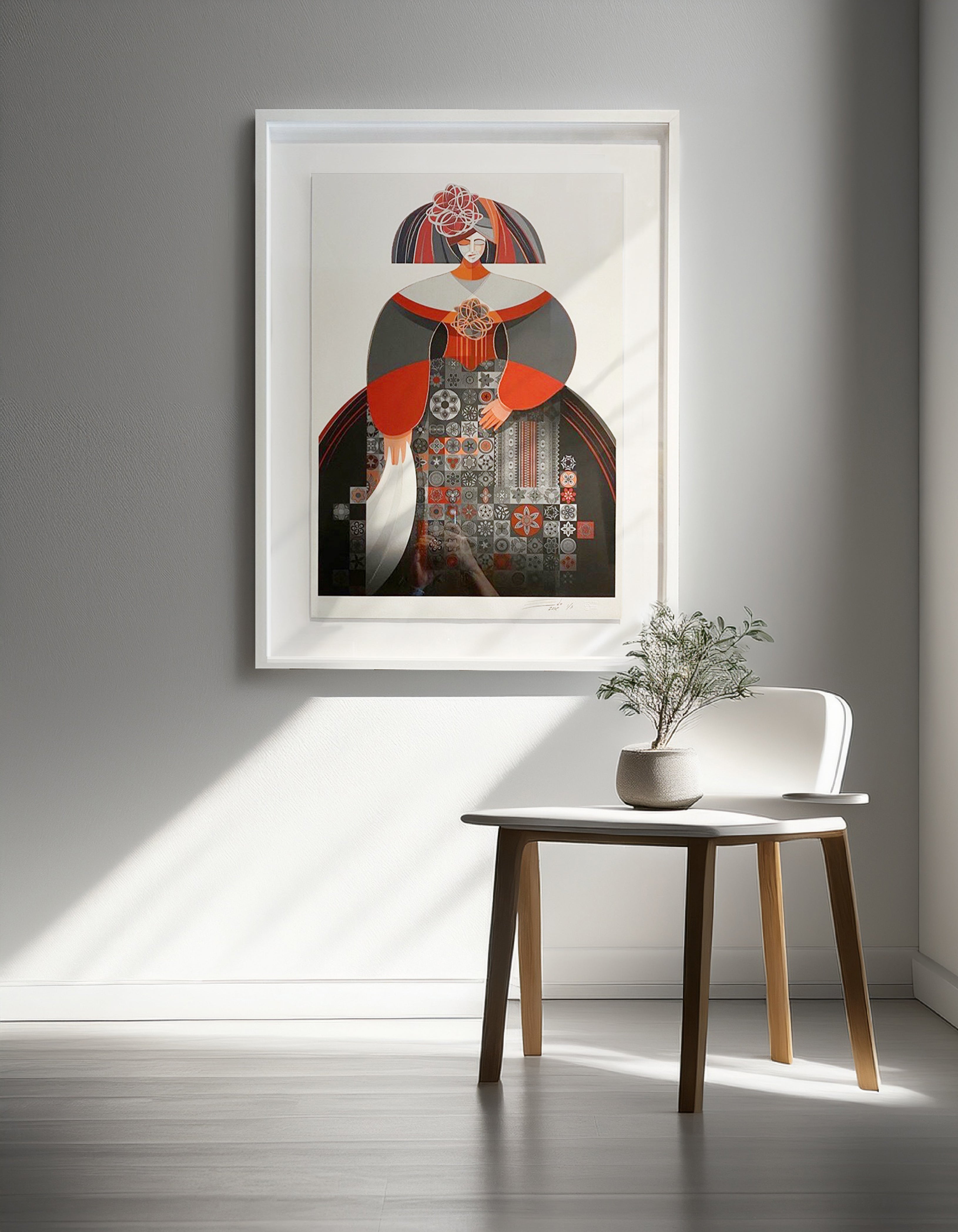 Presentada en montaje flotante y enmarcada con madera laqueada blanca. Incluye certificado de autenticidad.