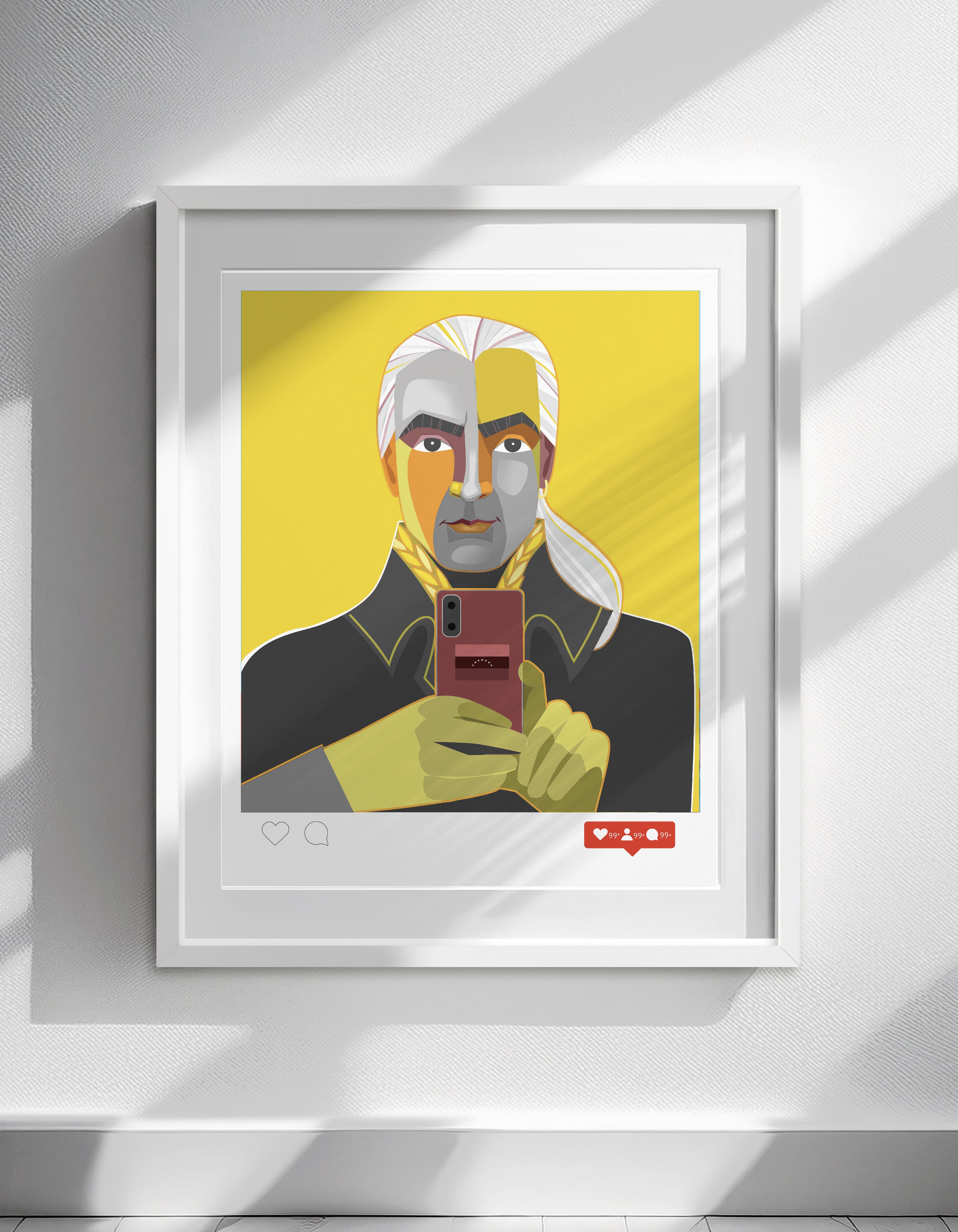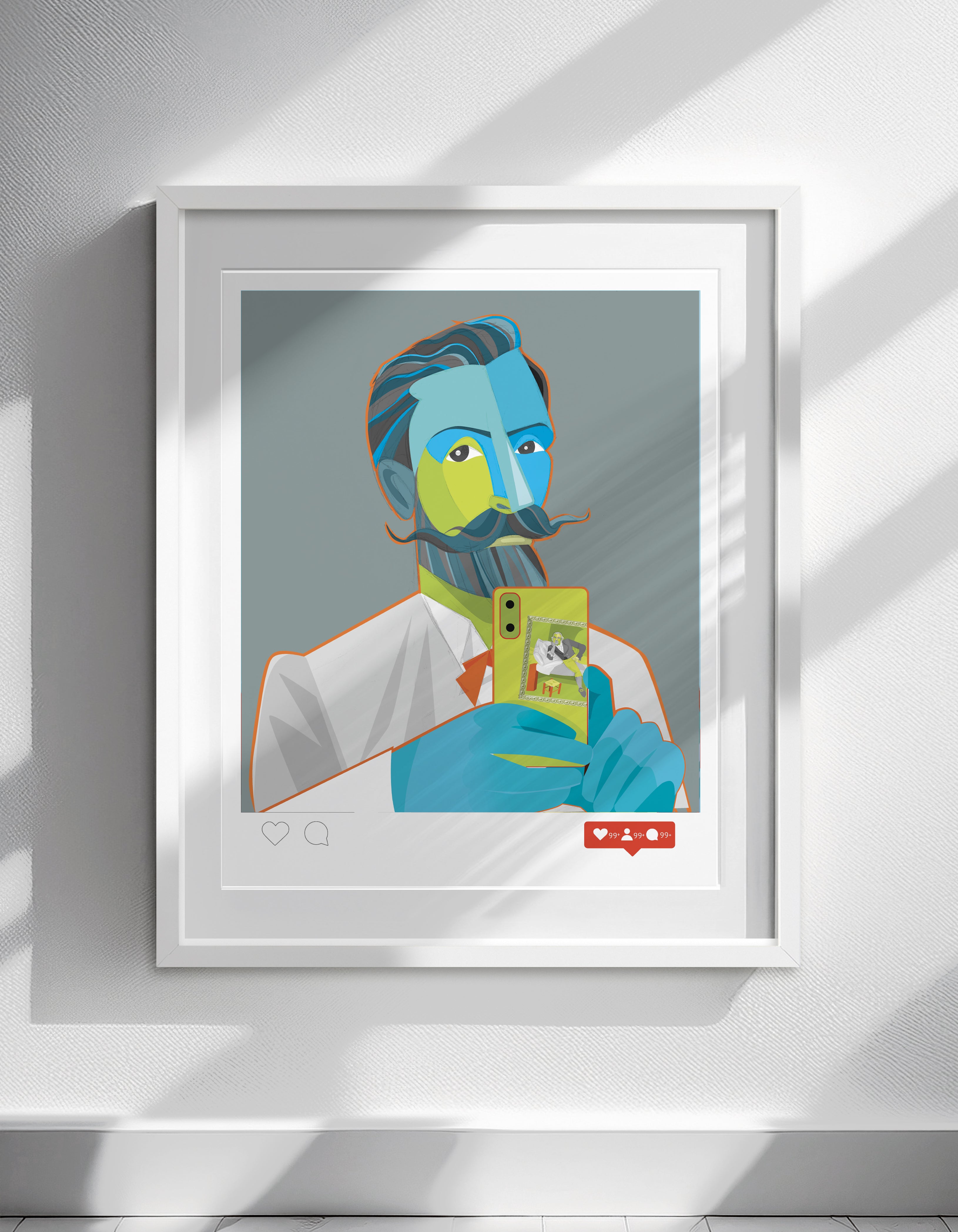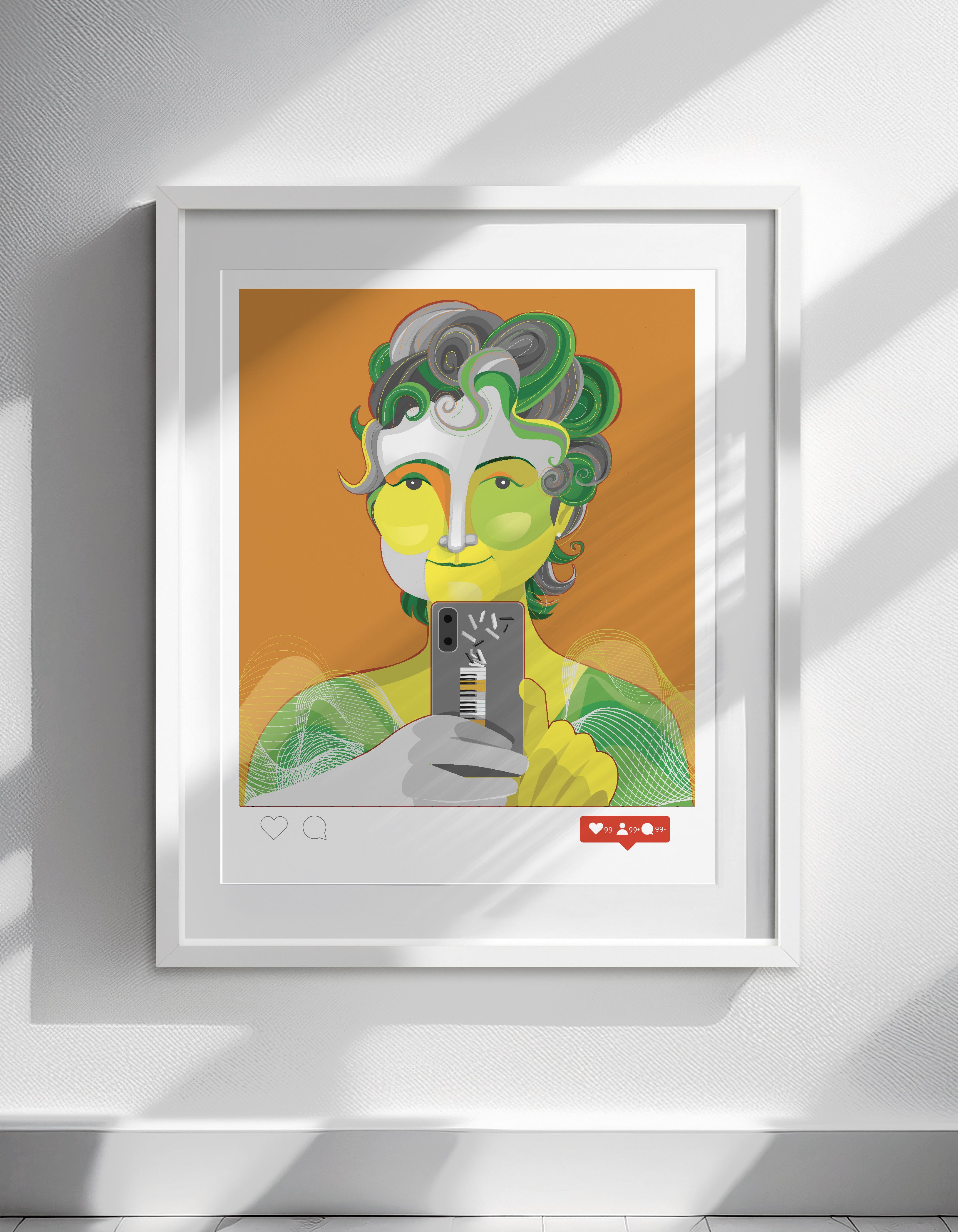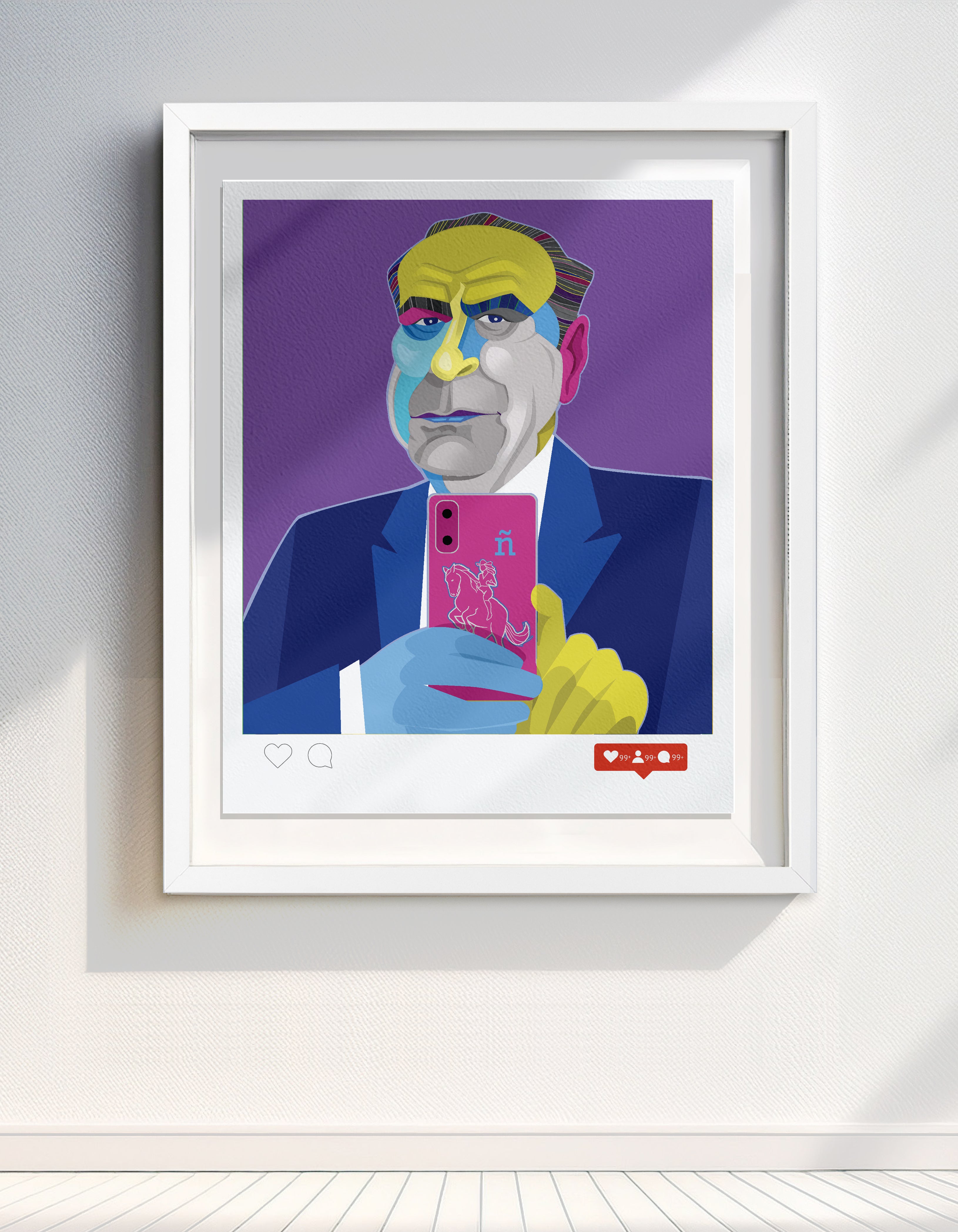 Técnica Mixta: Dibujada a mano y coloreada digitalmente. Impresa con técnica Gicleé sobre papel algodón alemán Hahnemühle e intervenida con crayones de óleo y acrílico.